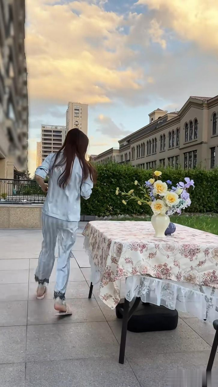 陈紫函的这套别墅是整套联排中的一套,她打了马赛克看不出几层,但是参照前面的房子,估计最少有四层,刚刚搬过来院子里还没怎么收拾,爱美的陈紫函简单的摆了张桌子,上面放着两瓶花,小女人的心思尽显。
