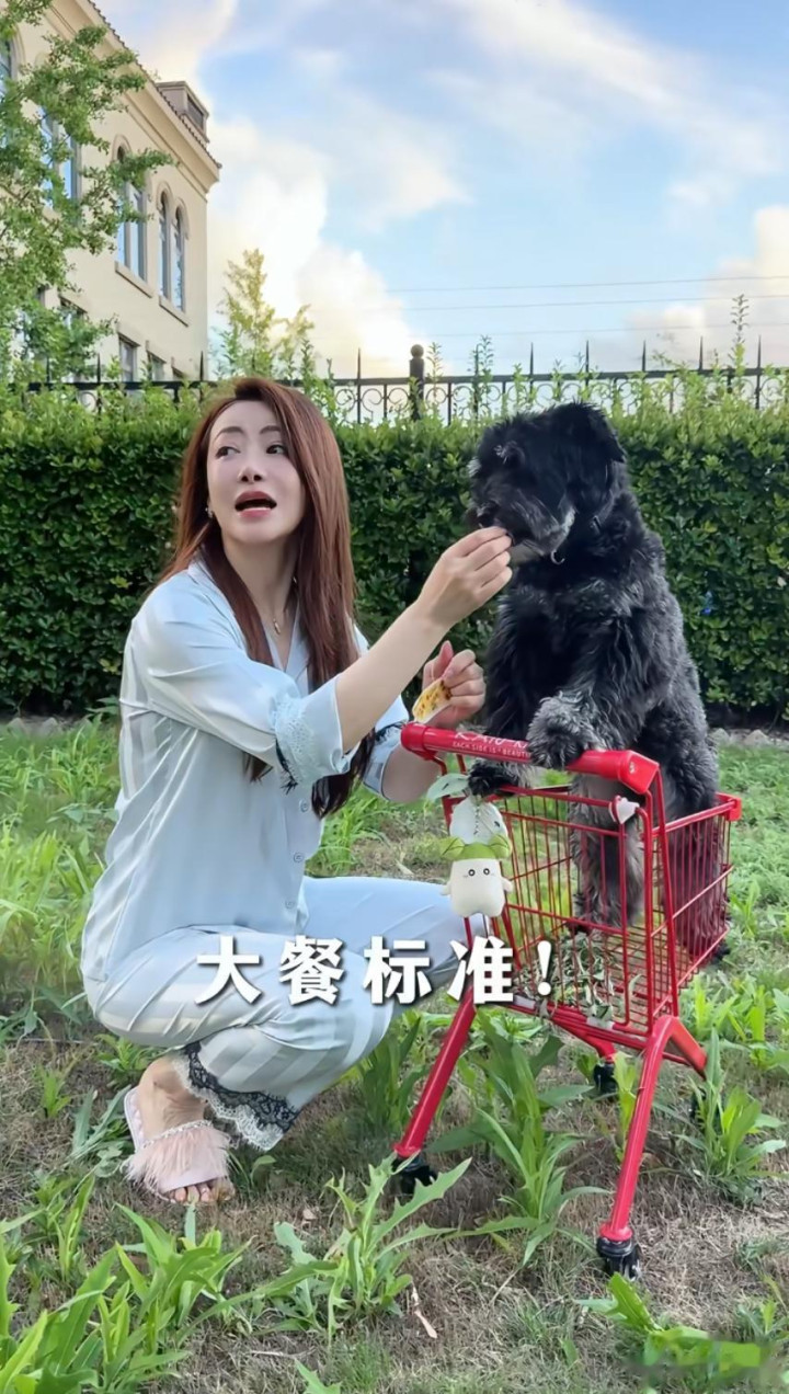 一大早陈紫函就在院子里遛狗狗,她就这么化着美美的妆,穿着真丝睡衣和毛毛拖鞋蹲在土地里,一点女明星的架子都没有,十分接地气。