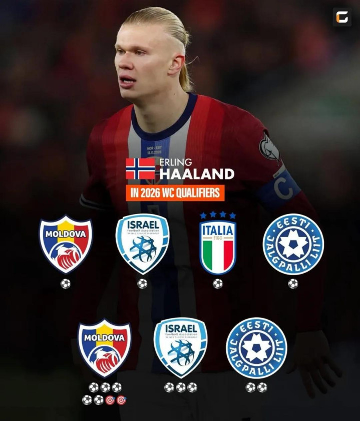 此外,哈兰德7场世预赛攻入14球2助攻,场均入球2球,有望冲击莱万多夫斯基保持的单届欧洲区世预赛进球纪录。2018年欧洲区世预赛,莱万多夫斯基10场比赛3次上演帽子戏法合计攻入16球,力压C罗(9场15球)创造该项纪录。哈兰德虽然前4场仅攻入1球,但最近3场攻入10球,其中对摩尔多瓦独中五元。末战意大利,冲击莱万的进球纪录是他个人最大的目标。赛季至今哈兰德各项赛事23场已攻入30球,场均1.3球,其中英超11场14球,挪威国家队8场11球,效率实在惊人。
