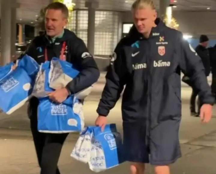 赛后挪威队更衣室成了欢乐的海洋,哈兰德带头与队友们载歌载舞,其他人则将队友开玩笑地塞进收纳箱。作为挪威队历史性突破的奖励,哈兰德请全队享受了超级汉堡餐,并亲自将汉堡外卖取回。虽然这不是职业球员应该食用的高热量食物,但这个欢庆出线的时刻,主教练索尔巴肯也乐得破例一次。